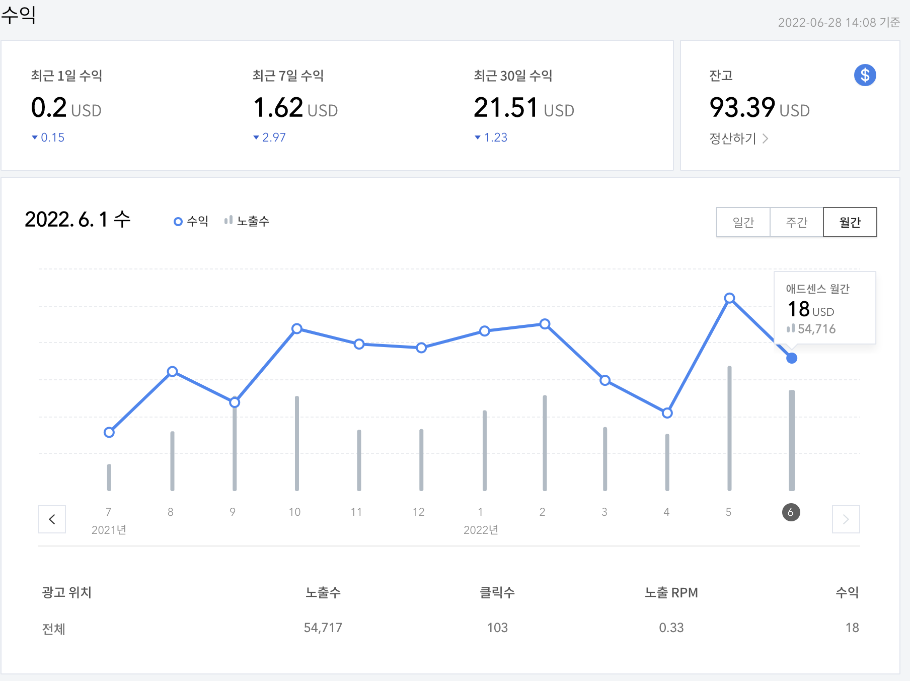 | 2022년 5월 블로그 정산 - 지옥에서 돌아온 티스토리 블로그 조회수와 수익 (4) | 2022.06.02 |